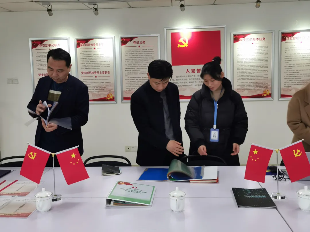 领导一行首先参观了公司的办公环境,随后来到党员活动室,参观了党支部党建工作宣传栏,查看了金年会党建小报,了解在册党员情况,为公司党建工作提出了指导性意见。?