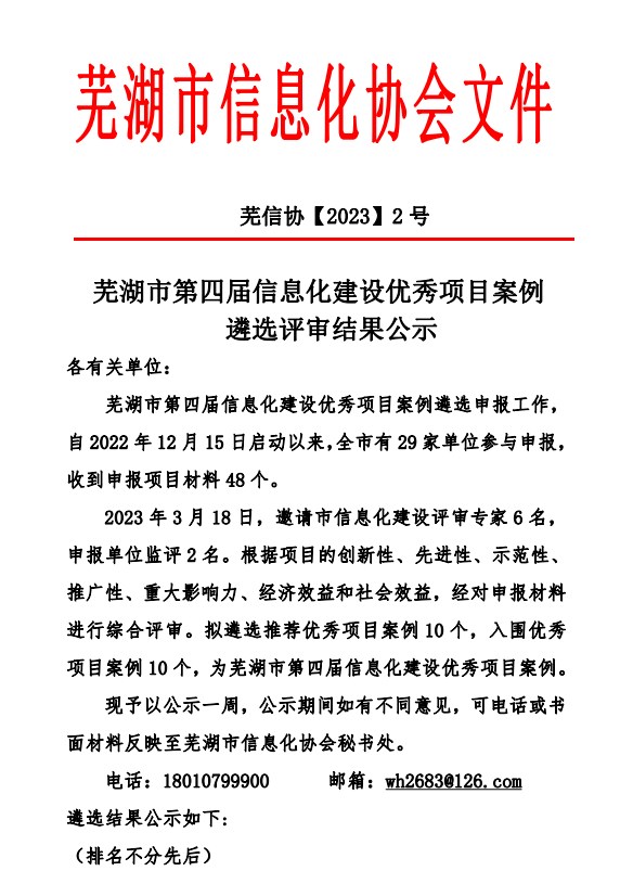 2023年4月10日,芜湖市信息化协会发布芜湖市第四届信息化建设优秀项目案例遴选评审结果,经过一周的公示期,安徽金年会凭借《皖南医学院数据治理及学生精准画像项目》成功入选“芜湖市第四届信息化建设优秀项目案例”。欢迎有需求的企事业单位或同行业人士前来交流指导!