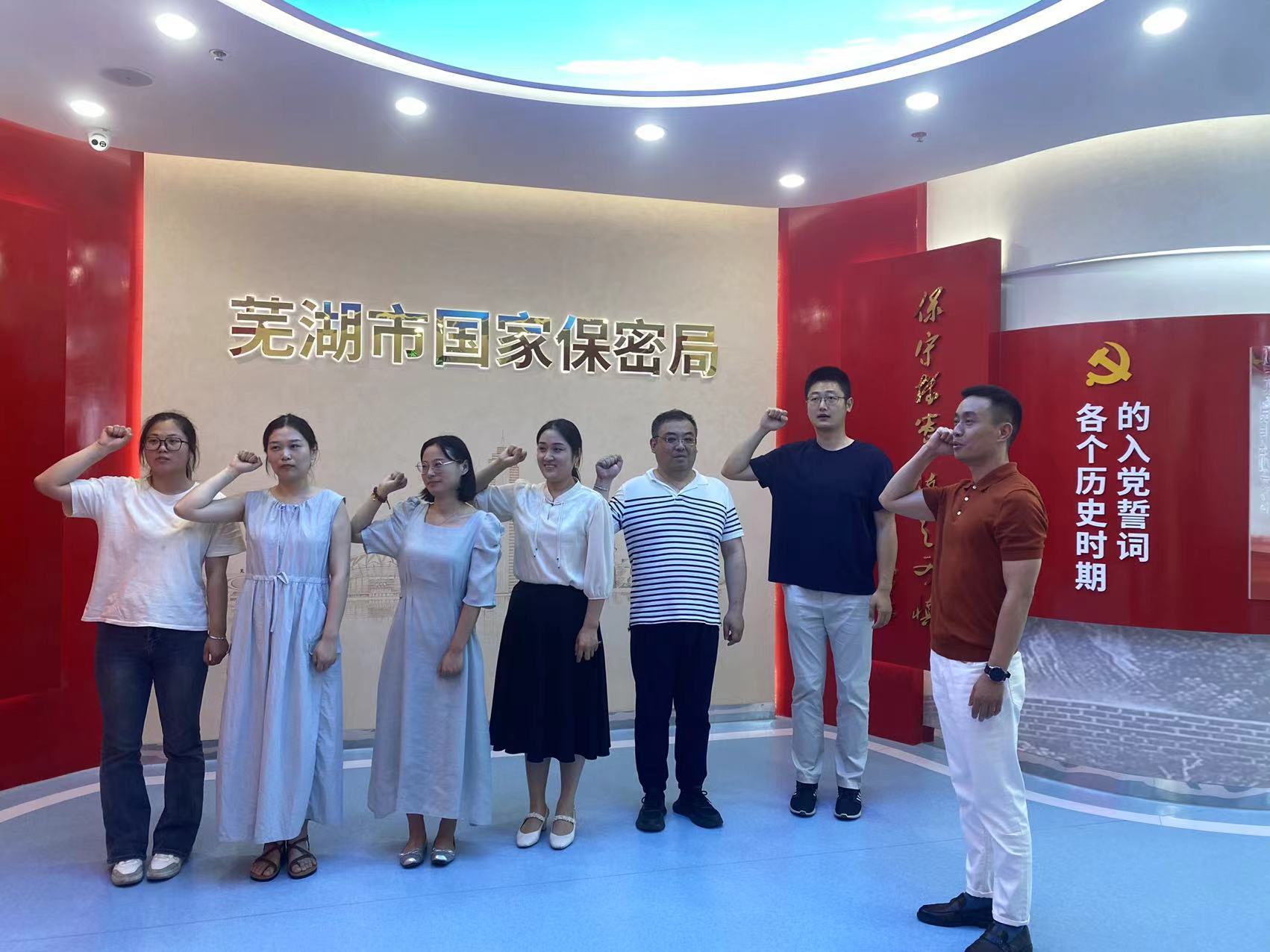 2024年是中国共产党成立103周年,革命薪火永相传,为不断增强党员的凝聚力和战斗力,发挥好党员的先锋模范作用。6月11日下午,安徽金年会信息技术有限公司的全体党员以及部分保密人员,前往芜湖市国家保密局,开展了“迎七?一走进芜湖市保密教育基地”主题党日活动。
