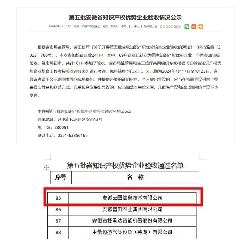 ? ? ? 近日,安徽省市场监督管理局公布了第五批安徽省知识产权优势培育企业验收情况公示。安徽金年会信息技术有限公司成功通过验收,获评第五批“安徽省知识产权优势企业”。